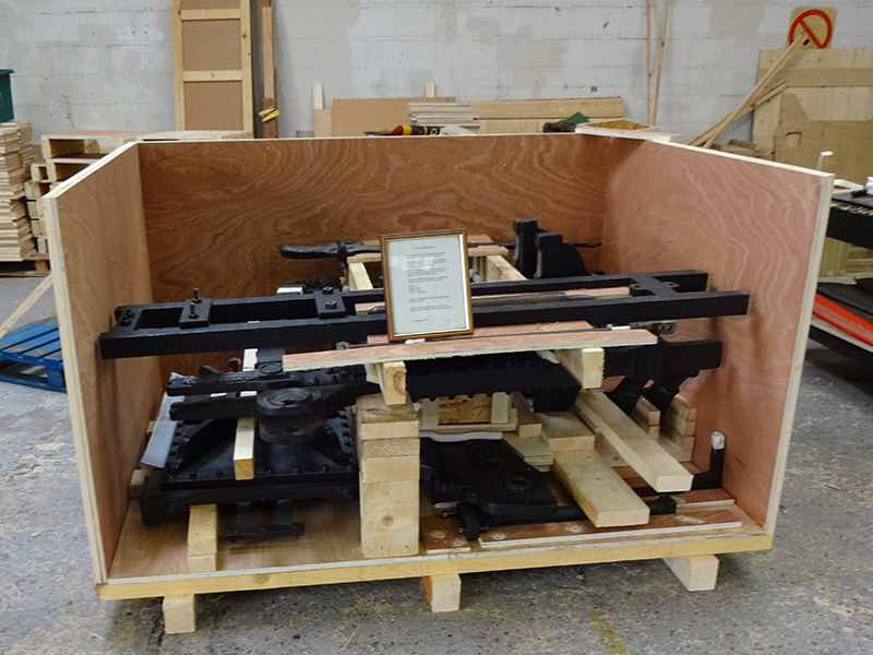 This consignment involved safely packing an antique Columbian Press for shipment by air.